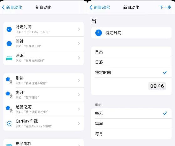 这个页面还有其它事件,比如到达、离开等。一般现在企业微信或者钉钉亦或者是公司自己的打卡APP都是基于距离进行定位打卡,所以这里也可以选择到达或者离开,这里以特定时间为例,其它事件可以自行摸索。